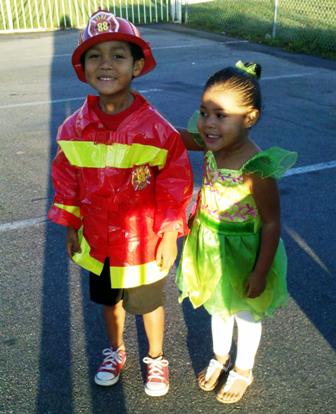 Eddie in his Fireman suit for school and Jazzy all set for daycare/preschool.