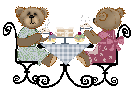 Tea Bears at rod iron table by