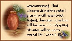 So why this women? She was empty and thirsty like me. She knew of the God if her fathers, and I bet she thought about Him at times like I did. Seems like she did not have any friends because she went to the well in the heat of the day instead of the morning. Jesus asked her for water. (Jesus called to me) Men did not talk to women let alone a Samaratin and a women like her. He talked to her and she asked Him questions(As I did when God was calling me back.) He knew of her past and present. He told her about Himself and she said she knew of the coming Messiah.(I knew of Jesus, but I wanted more, I realized I wanted a realtionship with Jesus.) He revealed Himself to her and she left to share it with others.
