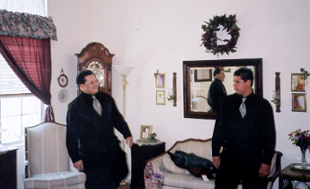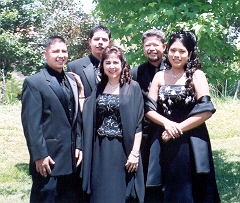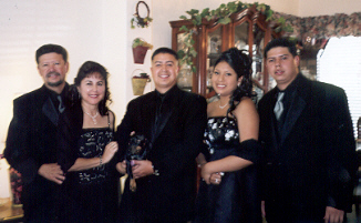 Andrew is holding Reina but she blends in.
