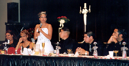 A few of the girls shared some things and then Daniel took the microphone. He had everyone laughing when he started out by saying"Brother, I have known you all my life." He listed several things they had done together. He even talked about how he wasn't happy the first couple of years because he sisn't want to lose his brother. But he saw how his brother loved Marina and was still there for him. Then Daniel shared how though he tried some things like smoke and drink, and felt like not wanting to live, it was his brothers unconditional love that got him through it. He loved his brother and now he was happy they were married. Daniel had the whole church in tears because it was just so heartfelt. Daniel was overcome and could not go on. So Andrew did what a brother does, he took the mic and finished the toast and then comforted his brother. Then Marina took the mic and said some things. It was just so special. I am sure no one will forget.