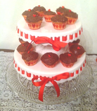 Strawberry inside and chocolate caramel frosting.