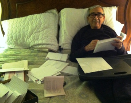 Here is my dad working on his Christmas cards.