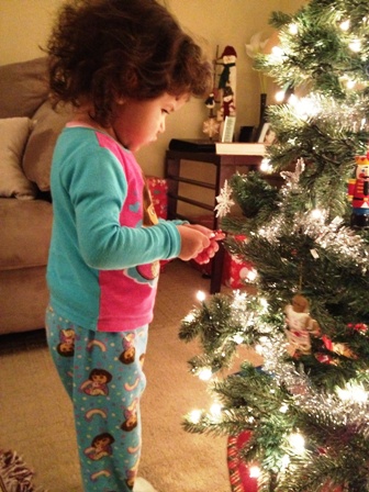 Audrina putting up her ornament.