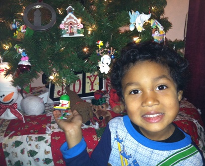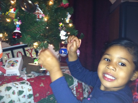 Each grandchild was happy to get an ornament from Papa Sam.