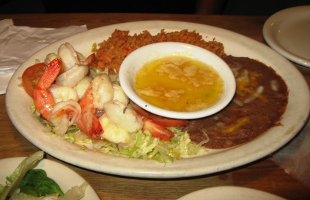 We share the grilled shrimp dinner that came with a large salad. It was very filling with the chips and salsa. Since were celebrating our anniversary and my birthday, we got a free fried icecream.