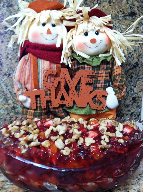 My mom's Cranberry Jello in her decorative bowl.