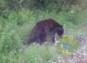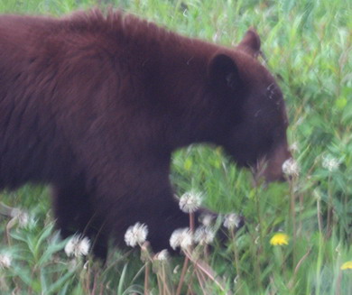 A American black bear nibbling on flowers