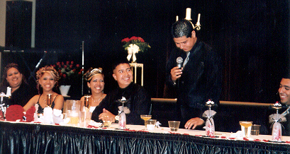 A few of the girls shared some things and then Daniel took the microphone. He had everyone laughing when he started out by saying"Brother, I have known you all my life." He listed several things they had done together. He even talked about how he wasn't happy the first couple of years because he sisn't want to lose his brother. But he saw how his brother loved Marina and was still there for him. Then Daniel shared how though he tried some things like smoke and drink, and felt like not wanting to live, it was his brothers unconditional love that got him through it. He loved his brother and now he was happy they were married. Daniel had the whole church in tears because it was just so heartfelt. Daniel was overcome and could not go on. So Andrew did what a brother does, he took the mic and finished the toast and then comforted his brother. Then Marina took the mic and said some things. It was just so special. I am sure no one will forget.