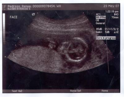 Taken at 34 weeks. Head on right, hands up by face