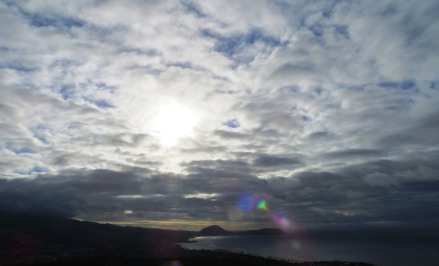 The sunrise over Koko head on the Winward side (Eastern) and Hanuama Bay .
