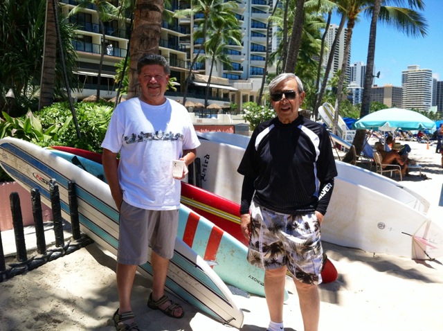 Getting ready for our Outrigger Canoe in front of the Royal Hawaiian Hotel.