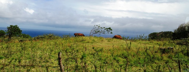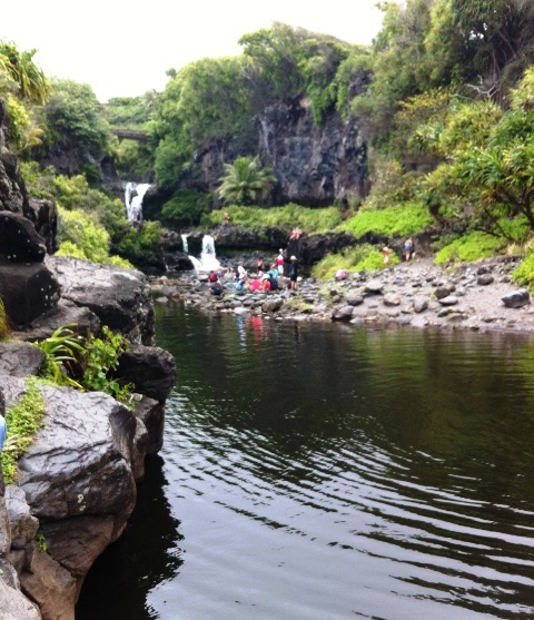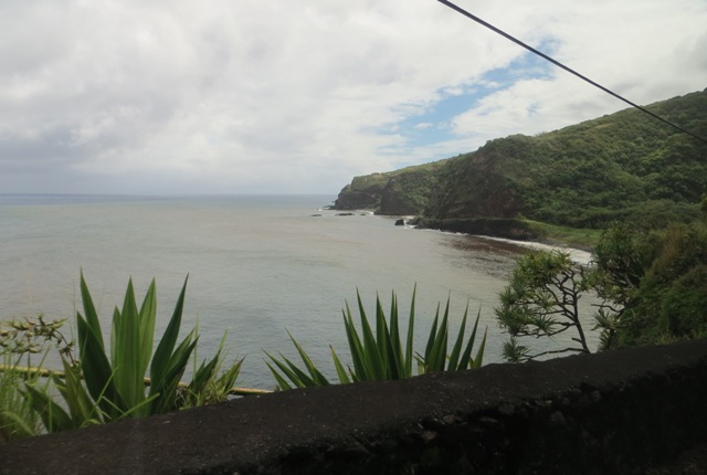 Opelu Falls as seen from the highway past Kipahulu. Water is usually clear
