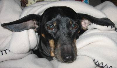 Mama was sick yesterday and stayed in bed and I kept her nice and warm. Then everyone was gone today and I was not happy. So I pooped in the living room! Mama gets so mad at me, but then she cools down fast. She says I am getting back because I hate to be left alone. I tried one of those cat things but it was too small. I do good on the papers most of the time. That is why they have tile everywhere! I heard mama say her other doxie did the same thing. Mama says I am tempermental and papa says I am spoiled!