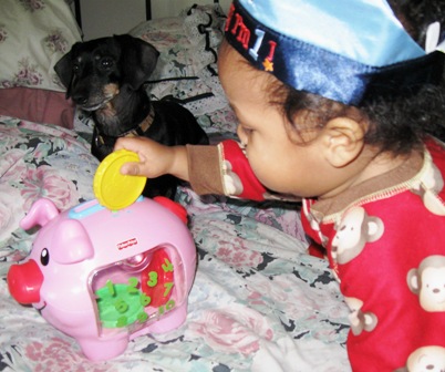 She likes the blanket my friend Olivia made me.