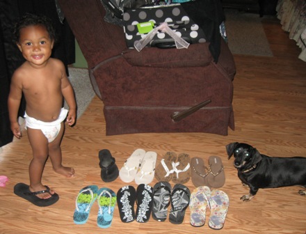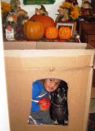 Here is one of Reina staring at this one gift and she would not let anyone come near it so I took it away. Later we found it was a huge box of Chocolate!